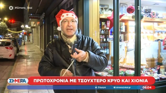 Μια τέτοια επιχείρησε σήμερα το πρωί, παραμονή Πρωτοχρονιάς, στην τηλεοπτική εκπομπή του ΣΚΑΪ «Σήμερα», όπου μας καλημέρισε φορώντας έναν γιορτινό σκούφο και κρατώντας στα χέρια του το παραδοσιακό «τριγωνάκι», ώστε να μας τα… ψάλλει.