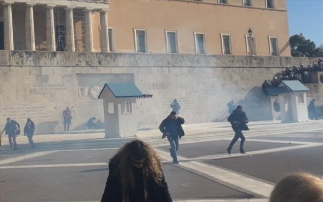 Ομάδα ατόμων επιχείρησε να σπάσει τον αστυνομικό κλοιό στο μνημείο του Άγνωστου Στρατιώτη και να φτάσει στο περιστύλιο της Βουλής. Ωστόσο, οι αστυνομικές δυνάμεις απάντησαν κάνοντας χρήση χημικών.