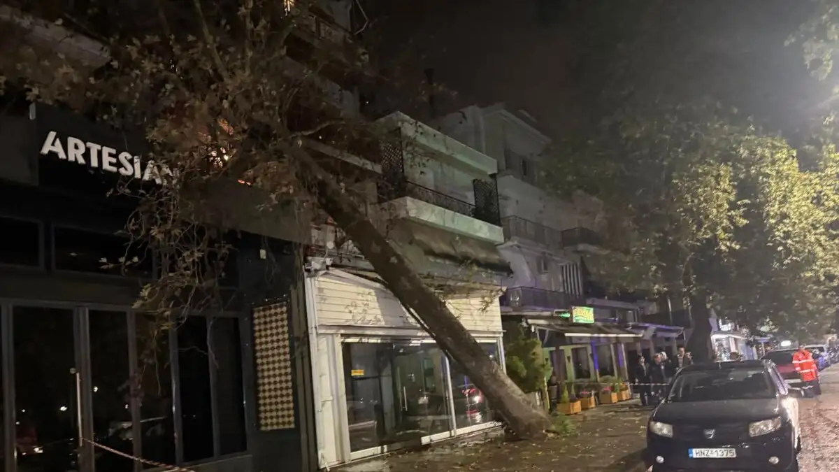 Στην Ηγουμενίτσα, ένας μεγάλος πλάτανος δεν άντεξε από τους ισχυρούς ανέμους που σάρωναν την περιοχή και καταπλάκωσε κατάστημα εστίασης το οποίο ήταν κλειστό και έτσι τα χειρότερα αποφεύχθηκαν καθώς πρόκειται για έναν πολυσύχναστο δρόμο.