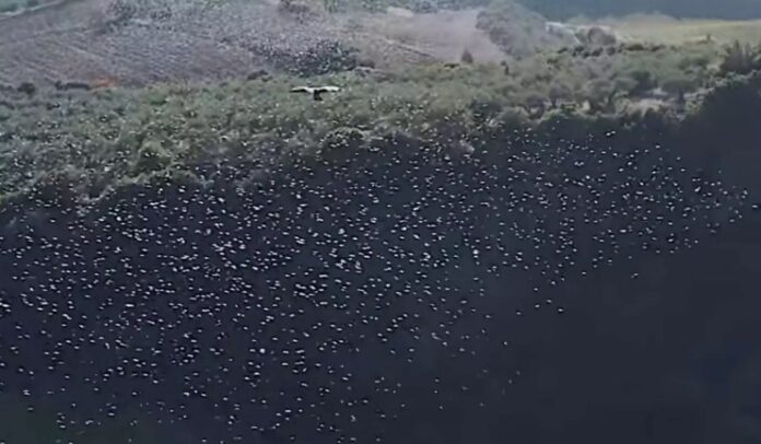 Οι εικόνες στη Φθιώτιδα παραπέμπουν σε πίνακα ζωγραφικής. Τα γεράκια εμφανίζονται στον ουρανό την ώρα που ένα σμήνος από μαυροπούλια έχει γεμίσει τον ορίζοντα…