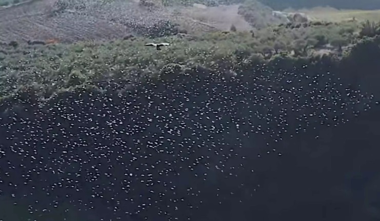 Ο Δημήτρης Μερμίγκης κατάφερε με το drone του να καταγράψει μοναδικές εικόνες από την επίθεση γερακιών σε σμήνος από μαυροπούλια.