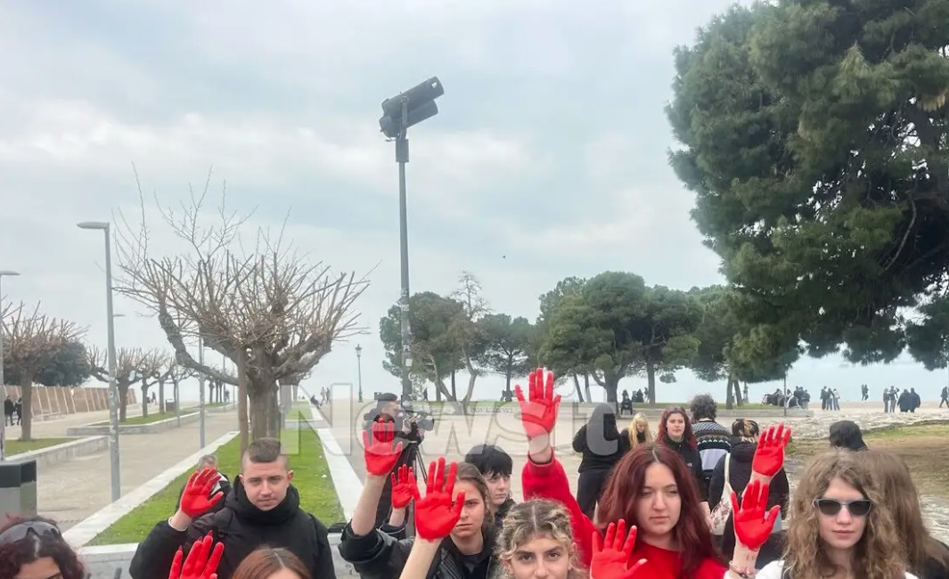 Η μια ομάδα κρατούσε ένα μεγάλο πανό ενώ η δεύτερη στεκόταν δίπλα της με βαμμένα χέρια καθώς μια τρίτη ομάδα κοριτσιών, έβαψαν με την ίδια μπογιά τα ονόματα των θυμάτων της τραγωδίας δίπλα από τον Λευκό Πύργο, με σύνθημα το «Ως εδώ».