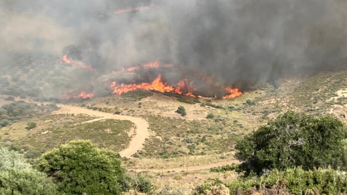 Μεταβάλλεται η κατάσταση από ώρα σε ώρα στην Κάρυστο, καθώς οι ισχυροί άνεμοι βοηθούν τις αναζωπυρώσεις.