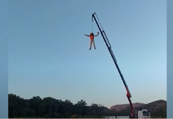 Λίγο πριν το ζευγάρι ανταλλάξει όρκους αιώνιας πίστης και αφοσίωσης, ο γαμπρός – κασκαντέρ κρατώντας την ανθοδέσμη «κρεμάστηκε» κυριολεκτικά από έναν γερανό και έκανε θεαματική είσοδο, αφού έφτασε στην παραλία Γαλησσά από αέρος.
