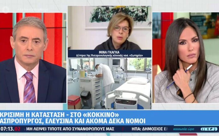«Όσοι είναι στις ΜΕΘ παραμένουν εκεί έως και πέντε εβδομάδες, συνεπώς δεν αναμένεται να μειωθούν άμεσα τα νούμερα νοσηλευομένων στις ΜΕΘ είπε στο Mega η κ. Μίνα Γκάγκα, διευθύντρια 7ης Πνευμονολογικής κλινικής του νοσοκομείου Σωτηρία, κρούοντας τον κώδωνα του κινδύνου για τις γιορτές και ιδίως για τα ρεβεγιόν.Όπως εκτίμησε γύρω στα Χριστούγεννα οι γιατροί θα αντιμετωπίσουν περισσότερες περιπτώσεις ασθενών προερχόμενων από τη δυτική Αττική.