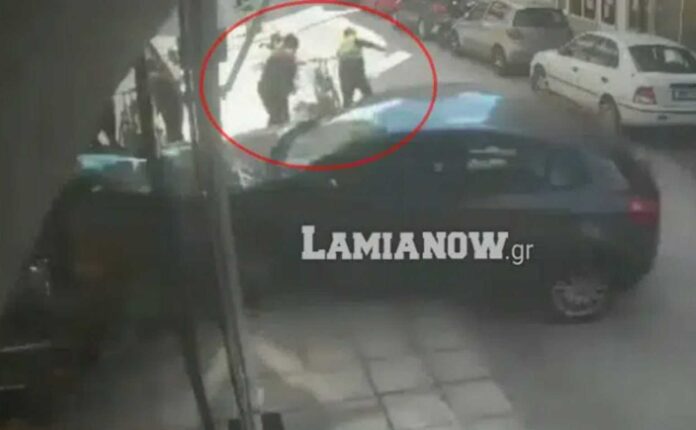 Από την τρελή πορεία του αυτοκινήτου τραυματίστηκε ο καταστηματάρχης ενώ από θαύμα γλίτωσαν οι δύο άνδρες που βρίσκονταν έξω, στο δρόμο, ο ένας εκ των οποίων ο Λαμιώτης…
