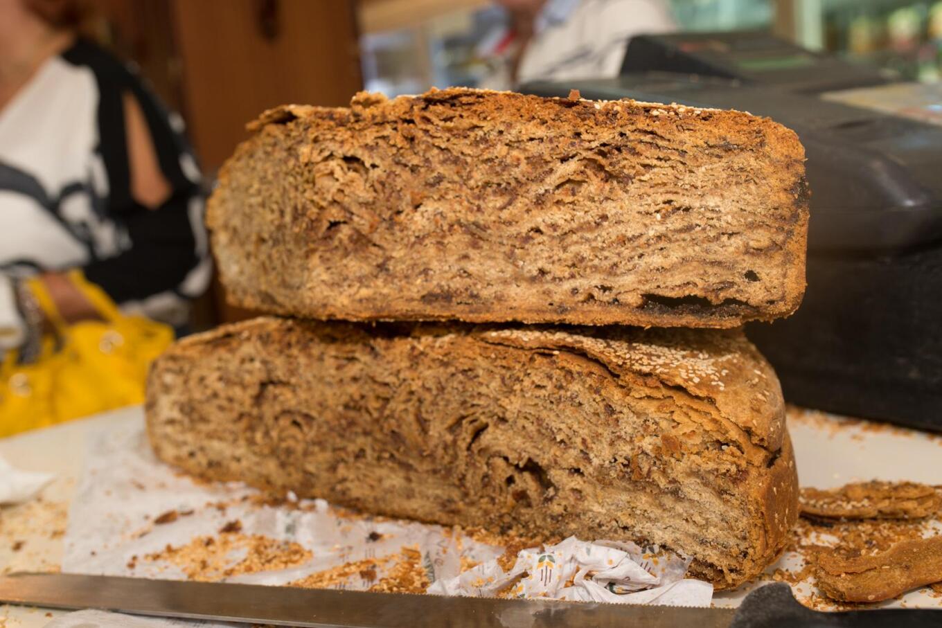 Είναι ένα αλλιώτικο και περίεργο για πολλούς γλυκό. Περίπου 50 χειροποίητα φύλα το ένα πάνω από το άλλο περικλείουν στρώσεις με ξερή αγιασώτικη μυτζήθρα, ζάχαρη και πολλά γλυκά μυρωδικά. Χρειάζεται δε τουλάχιστον τρεις ώρες για να γίνει και έξι έως οκτώ ώρες να ψηθεί.