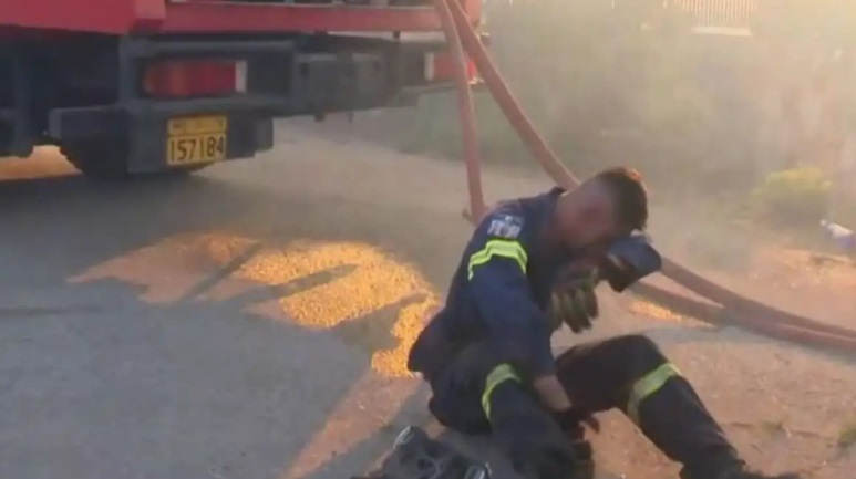 Εθελοντής πυροσβέστης κατέρρευσε την ώρα που ο ίδιος και οι συνάδελφοί του έδιναν μάχη στη φωτιά που μαίνεται ανεξέλεγκτη στο Κρυονέρι.