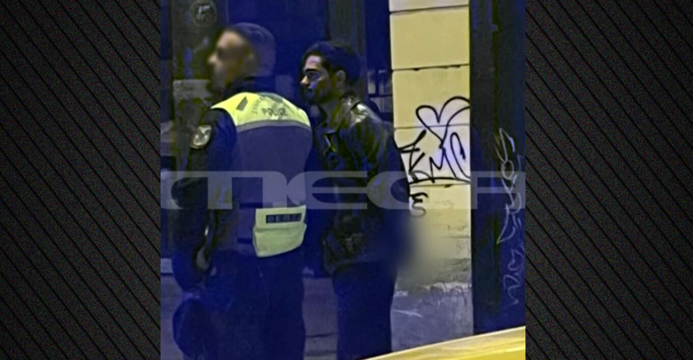 Φωτογραφία αποτυπώνει τη σύλληψη του γνωστού τραγουδιστή στο κέντρο της Αθήνας. Το στιγμιότυπο που προβλήθηκε από το Mega, απεικονίζει τον τραγουδιστή με χειροπέδες, ενώ έχει δίπλα του βρίσκεται ένας αστυνομικός.