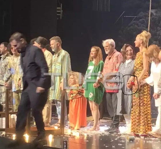 Οι τρεις τους, αφού συνομίλησαν για λίγα λεπτά έξω από τον χώρο του θεάτρου στη συνέχεια κατευθύνθηκαν στην αίθουσα και παρακολούθησαν την παράσταση με μεγάλο ενδιαφέρον από την πρώτη σειρά.