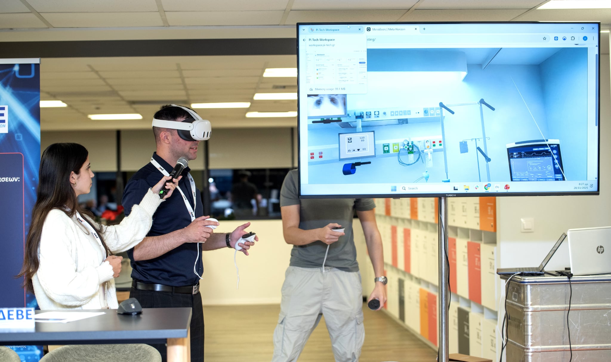 Αμέσως μετά, οι κος Πέτρος Παπαδόπουλος και η κα Κυριακή Παπαδοπούλου (Pi tech) παρουσίασαν σύγχρονες immersive τεχνολογίες που αναδιαμορφώνουν τον τρόπο με τον οποίο οι επιχειρήσεις εκπαιδεύουν, συνεργάζονται και λειτουργούν.