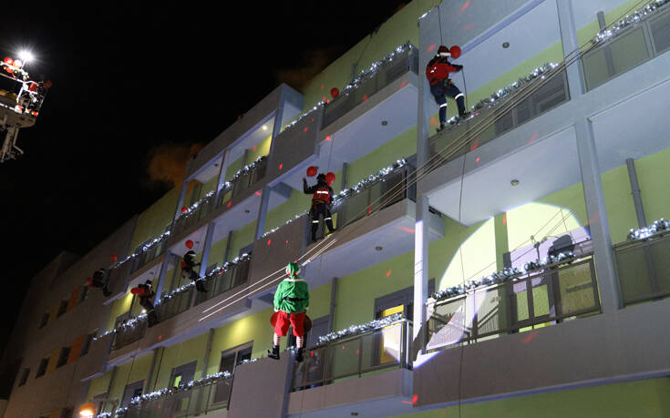 Ντυμένοι Άγιοι Βασίληδες κατέβαιναν με σχοινιά από όροφο σε όροφο, μοιράζοντας δώρα, ενώ μαζί με τους καλικάντζαρους μοίρασαν και δώρα στο προαύλιο του νοσοκομείου.