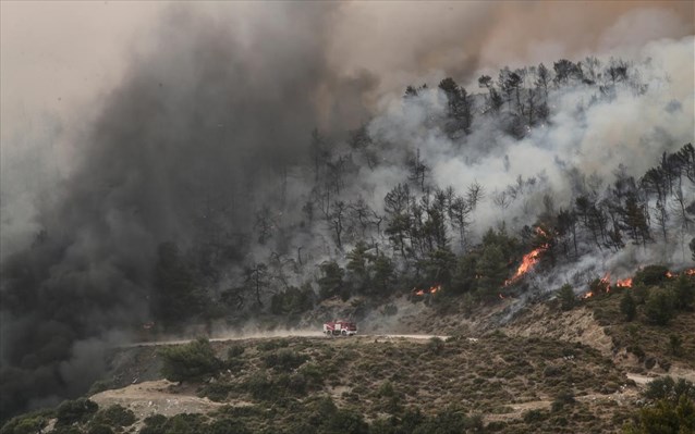 Στο σημείο επιχειρούν 25 πυροσβέστες με 10 οχήματα και πέντε άτομα πεζοπόρο τμήμα.