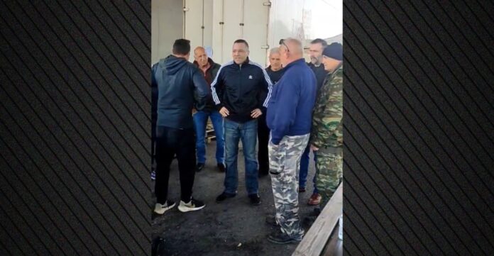 Όπως φαίνεται σε βίντεο που ανήρτησε ο ίδιος στα social media, έφτασε στο σημείο όπου βρίσκονται αγροτικά οχήματα και φορτηγά και χαιρέτησε αγρότες που βρίσκονταν στο μπλόκο.