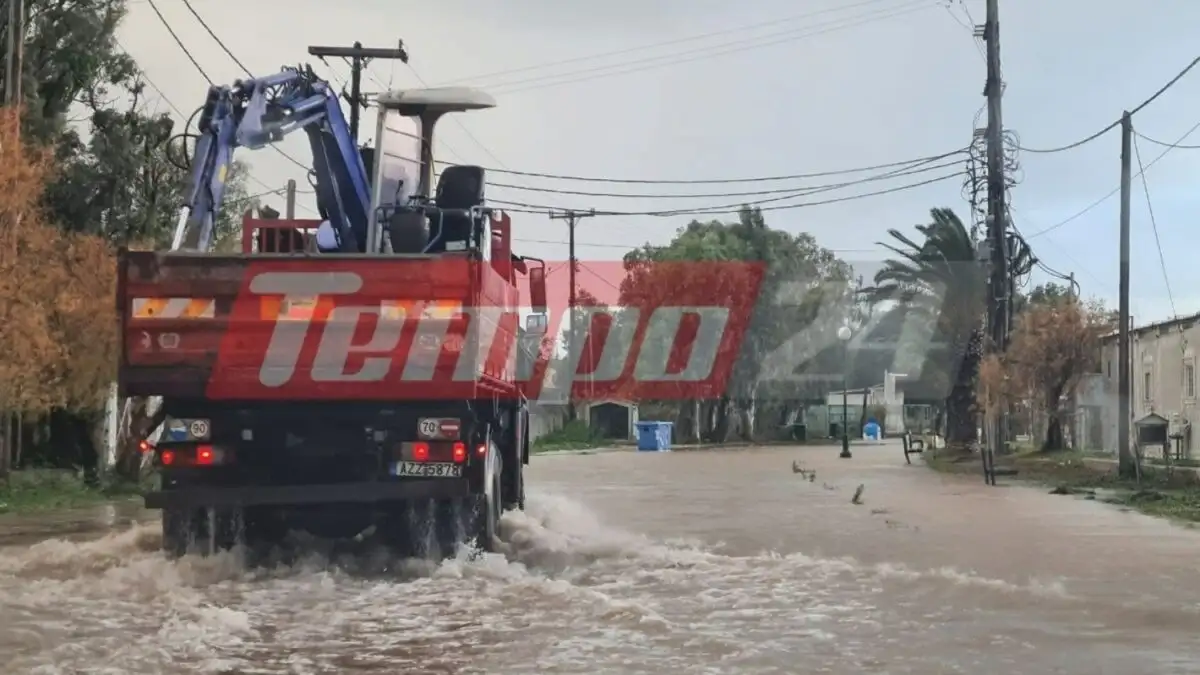 Πλημμύρες καταγράφονται και στην Ακτή Δυμαίων.