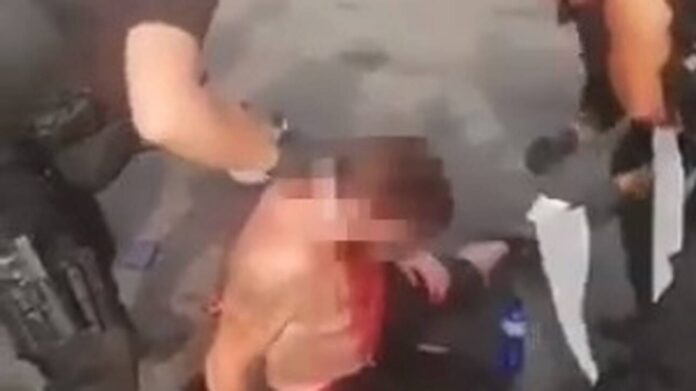Ειδικότερα, ο άνδρας φαίνεται πεσμένος στο οδόστρωμα μετά την επίθεση και οι αστυνομικοί με γάζες που είχαν στις μηχανές τους τού δένουν τα τραύματα, ώστε να κερδίσουν χρόνο μέχρι να τον μεταφέρουν στο νοσοκομείο.