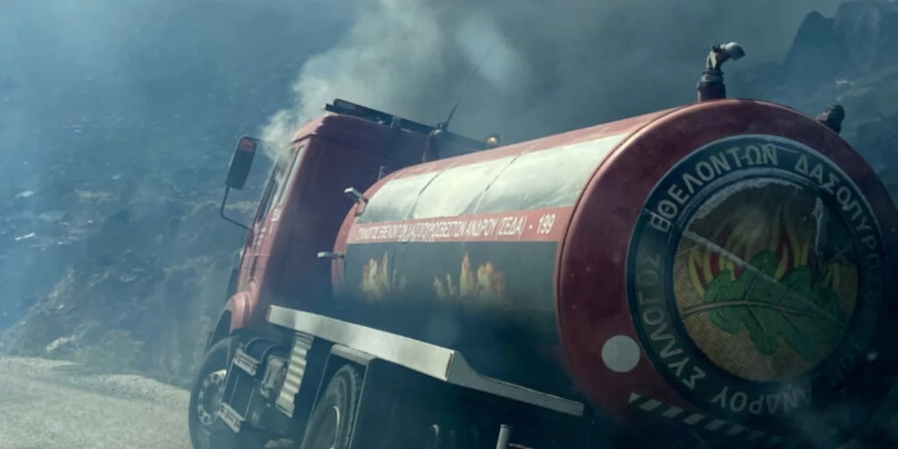 Στιγμές τρόμου έζησε ο οδηγός μιας υδροφόρας που τυλίχτηκε στις φλόγες κατά τη διάρκεια της μεγάλης φωτιάς που ξέσπασε το Σάββατο στην Άνδρο.