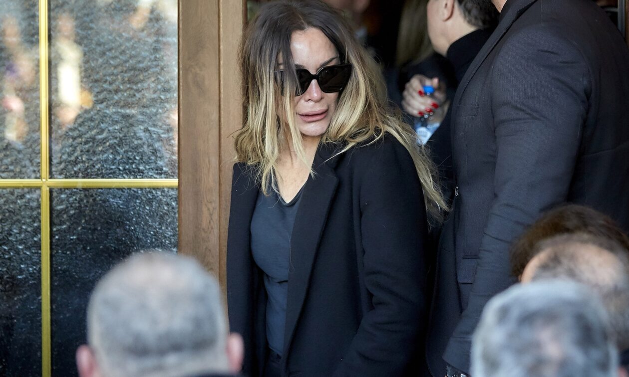Από το τελευταίο αντίο στον Βασίλη Καρρά δεν θα μπορούσε να λείπει η Δέσποινα Βανδή. Μαζί της και ο σύντροφός της, Βασίλης Μπισπίκης.