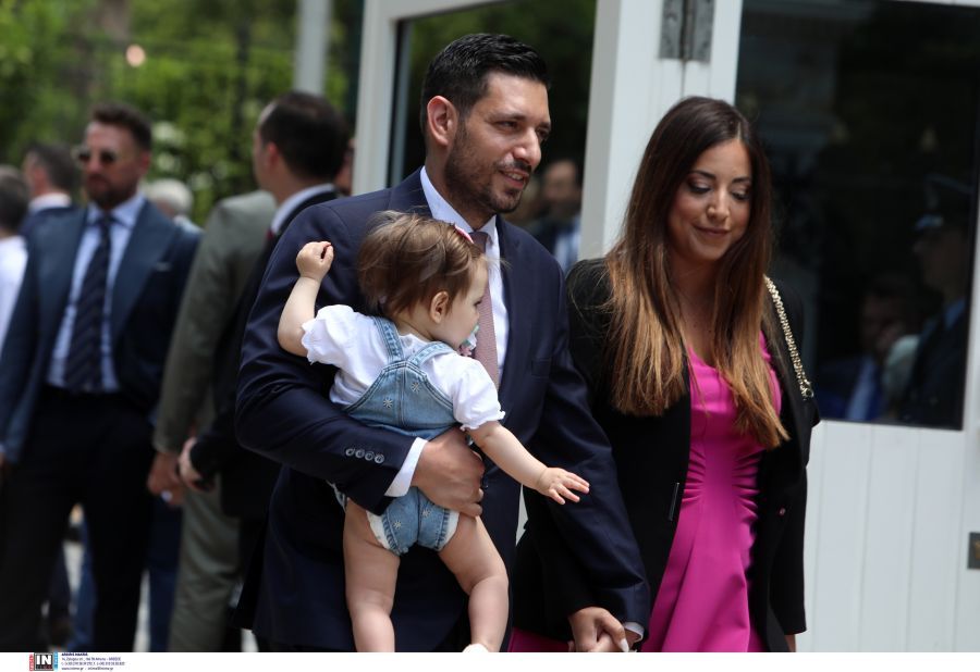 Ο νέος υφυπουργός Ψηφιακής Διακυβέρνησης έφτασε λίγο πριν τη 1 στο Προεδρικό Μέγαρο για την ορκωμοσία, κρατώντας στην αγκαλιά του τη 10 μηνών κορούλα του, Δανάη και έχοντας στο πλευρό του τη σύζυγό του, Ελένη Αθερινού.