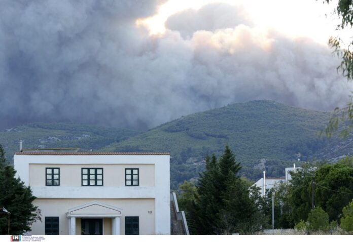 Εκκενώνονται οι οικισμοί Αγία Παρασκευή Μενιδίου, Καποτά και Λεφαντώ λόγω της φωτιάς που καίει στην Πάρνηθα από χθες, Τρίτη (22/8).