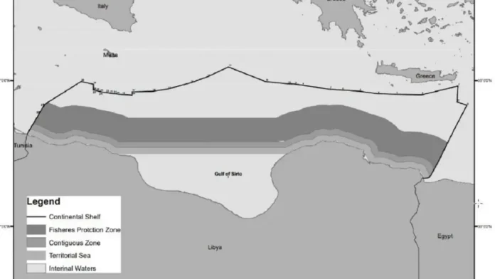 Με τη ρηματική διακοίνωση και τον χάρτη που τη συνοδεύει, η Λιβύη χαράσσει εξωτερικά όρια υφαλοκρηπίδας έως την Κρήτη βάζοντας στο στόχαστρο όχι μόνο την Ελλάδα αλλά και την Τουρκία.