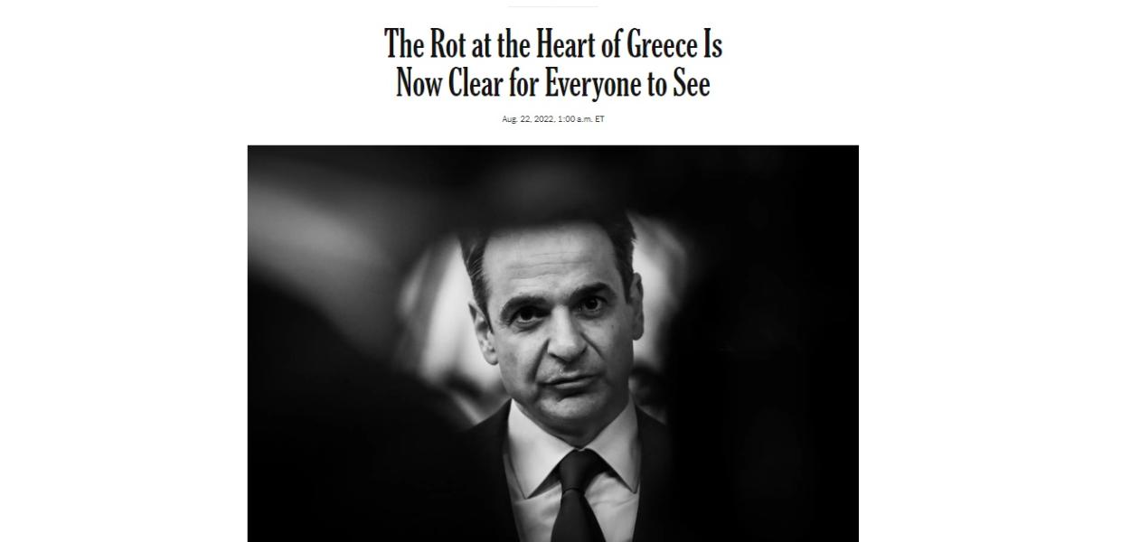 Με τίτλο «Η σήψη στην καρδιά της Ελλάδας είναι πλέον ξεκάθαρη για όλους», ο δημοσιογράφος Alexander Clapp, που βρίσκεται στην Αθήνα για λογαριασμό των New York Times, δημοσιεύει στην εφημερίδα ένα άρθρο γνώμης, σχετικά με την υπόθεση των παρακολουθήσεων και όχι μόνο, σχολιάζοντας την κατάσταση στη χώρα.