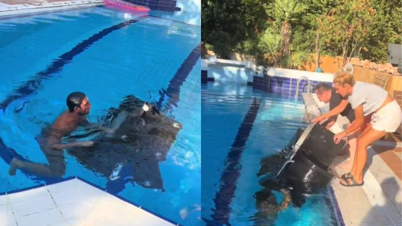 Σε αυτό, ο Μάριος Καπότσης φαίνεται να φορά το μαγιό του και να βουτά στην πισίνα, στην προσπάθειά του να σηκώσει το μπάρμπεκιου από τον πάτο της πισίνας.