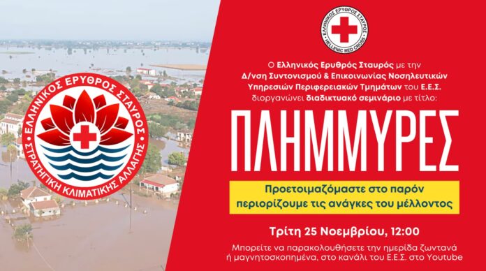 Ο Ελληνικός Ερυθρός Σταυρός (Ε.Ε.Σ.), στο πλαίσιο υλοποίησης της Στρατηγικής Κλιματικής Αλλαγής του Ε.Ε.Σ.,διοργανώνειτηνΤρίτη25Νοεμβρίου2025καιώρα12:00μ.μ.διαδικτυακόσεμινάριομεθέμα: