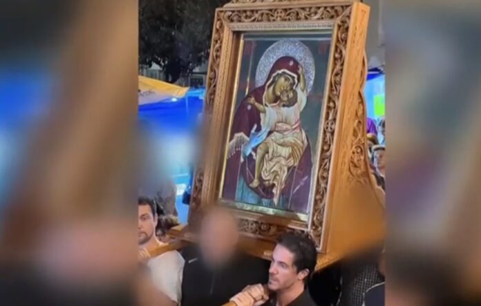 Ο Νίκος Οικονομόπουλος βρέθηκε στη λιτανεία της εικόνας της Παναγίας της Παρηγορήτριας που πραγματοποιήθηκε το βράδυ της Πέμπτης 26ης Οκτωβρίου στον Ιερό Ναό του Αγίου Δημητρίου στο Βύρωνα και κράτησε και την εικόνα.