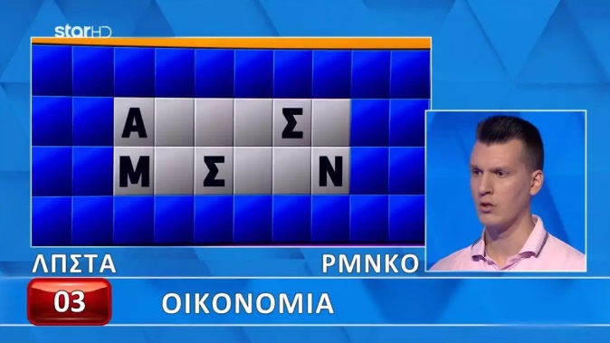 Περνώντας στον τελευταίο γρίφο και στην κατηγορία «Οικονομία», ο Άρης κλήθηκε να βρει την κρυμμένη φράση, η οποία δεν ήταν άλλη από την «Αύξηση Μισθών». Αρχικά, επιλέγοντας τα γράμματα «ρ, μ, ο, ν, κ» και έχοντας ήδη φανερά το «α» και το «σ», ο παίκτης κατάφερε να λύσει τον γρίφο μέσα σε 7 δευτερόλεπτα!