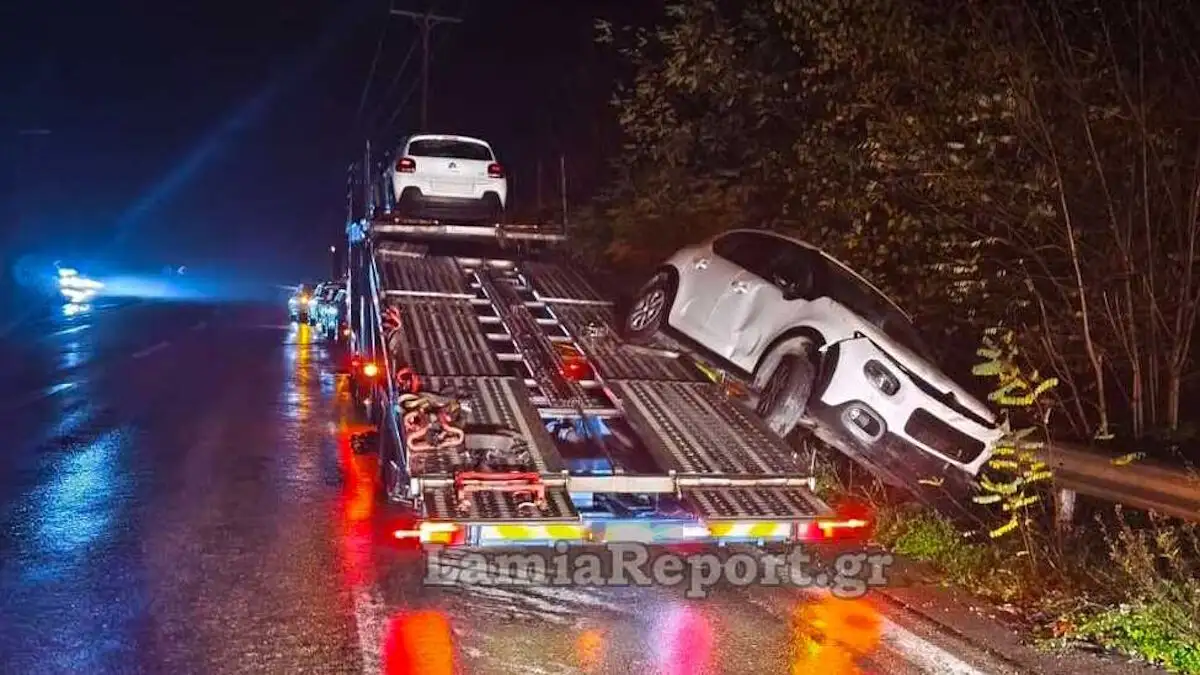 Σύμφωνα με πληροφορίες για το ατύχημα, αυτοκίνητο «έφυγε» από αυτοκινητάμαξα που κινούνταν μέσω παραδρόμων λόγω των αγροτικών μπλόκων, στην εθνική οδό Θερμοπυλών – Ιτέας στο ύψος της διασταύρωσης Αμφίκλειας στη Φθιώτιδα.