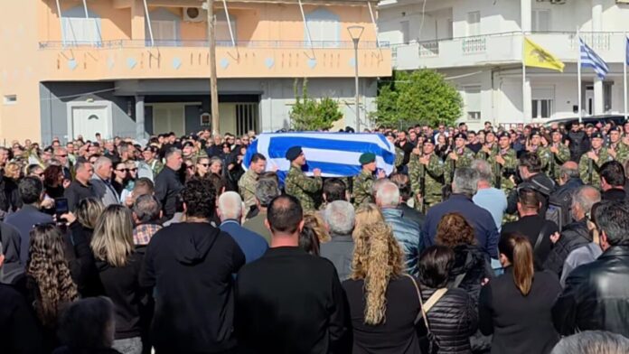 Αβάσταχτος ο πόνος στην κηδεία του 19χρονου Ραφαήλ που σκοτώθηκε από έκρηξη χειροβομβίδας σε πεδίο βολής στη Ρόδο, κατά τη διάρκεια στρατιωτικής άσκησης. Η οικογένεια του, συγγενείς και φίλοι τον αποχαιρετούν σήμερα (28.11.2025) στο Τυμπάκι, στον τόπο καταγωγής του.