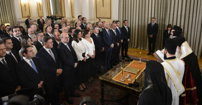 Στην τελική ευθεία για την επίσημη ανάληψη των καθηκόντων τους μπήκαν τα 63 μέλη της νέας κυβέρνησης του Κυριάκου Μητσοτάκη καθώς ορκίστηκαν στο Προεδρικό Μέγαρο ενώπιον της Προέδρου της Δημοκρατίας και του πρωθυπουργού ο οποίος έφτασε πεζός από το Μέγαρο Μαξίμου στη 1 μετά το μεσημέρι.