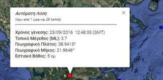 Ο σεισμός είχε μέγεθος 3,7 Ρίχτερ, σύμφωνα με το Γεωδυναμικό Ινστιτούτο της...
