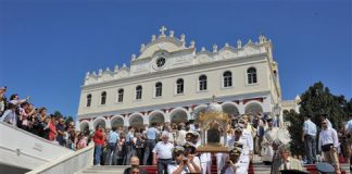 Πλήθος πιστών στην Τήνο για τον εορτασμό της Κοιμήσεως της Θεοτόκου