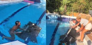 Στον πάτο της πισίνας κατέληξε το μπάρμπεκιου του Λευτέρη Πανταζή, λόγω του δυνατού ανέμου που επικρατεί σήμερα.