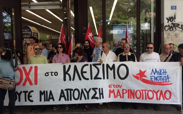 Εκδήλωση της Λαϊκής Ενότητας έξω από τον Μαρινόπουλο στην Ομόνοια
