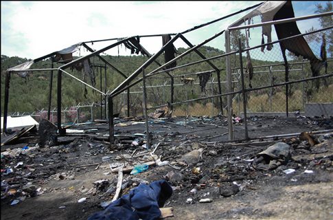 Πρόσφυγες έβαλαν φωτιά σε κοντέινερ στη Μόρια