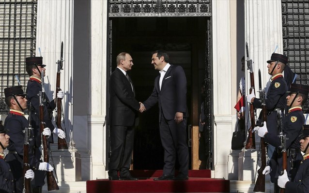Ο κ. Πούτιν έγινε δεκτός από τον πρωθυπουργό Αλέξη Τσίπρα.