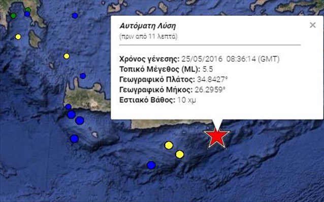Σε Κάσο και Κάρπαθο έγινε αισθητή η σεισμική δόνηση που σημειώθηκε στις 11.36 στη θαλάσσια περιοχή νότια της Κρήτης.