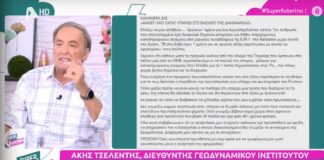 Ένα πρωταπριλιάτικο αστείο του Άκη Τσελέντη, διευθυντή του Γεωδυναμικού Ινστιτούτου προκάλεσε αναστάτωση στην εκπομπή «Super Κατερίνα», με τον Ανδρέα Μικρούτσικο και τον Στέφανο Κωνσταντινίδη...