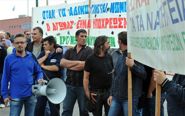 Στο ΥΕΘΑ διαδηλώνουν εργαζόμενοι στα ναυπηγεία Ελευσίνας