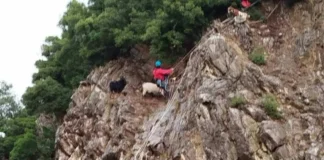 Χρειάστηκε η συντονισμένη επιχείρηση της Πυροσβεστικής αλλα και εθελοντών στην Ευρυτανία για περίπου 1,5 ώρα για τη διάσωση ζώων που είχαν εγκλωβιστεί σε βράχια.