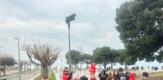 Φοιτητές με βαμμένες κόκκινες παλάμες έγραψαν τα ονόματα των 57 θυμάτων...