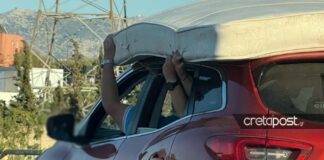 Μετέφεραν στρώμα στην οροφή αυτοκινήτου και το κρατούσαν με τα χέρια...