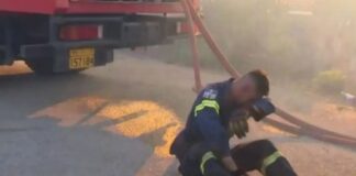 Η στιγμή που εθελοντής πυροσβέστης στη φωτιά στο Κρυονέρι, καταρρέει και...