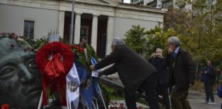 Στεφάνι στο χώρο του Πολυτεχνείου κατέθεσε αντιπροσωπεία της Γενικής Συνομοσπονδίας Εργατών Ελλάδας, στο πλαίσιο των εκδηλώσεων μνήμης για την εξέγερση του Πολυτεχνείου.