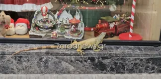 Τεράστιο ιγκουάνα σταμάτησε μπροστά σε βιτρίνα με Χριστουγεννιάτικα (βίντεο)