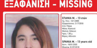 Σύμφωνα με το δελτίο Τύπου που εξέδωσε το Χαμόγελο του Παιδιού για την εξαφάνιση της 13χρονης, «Η Σπάνια έχει ύψος 150 μ., είναι αδύνατη...