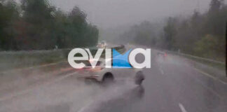 Η στιγμή που οδηγός χάνει τον έλεγχο εν μέσω βροχής και...
